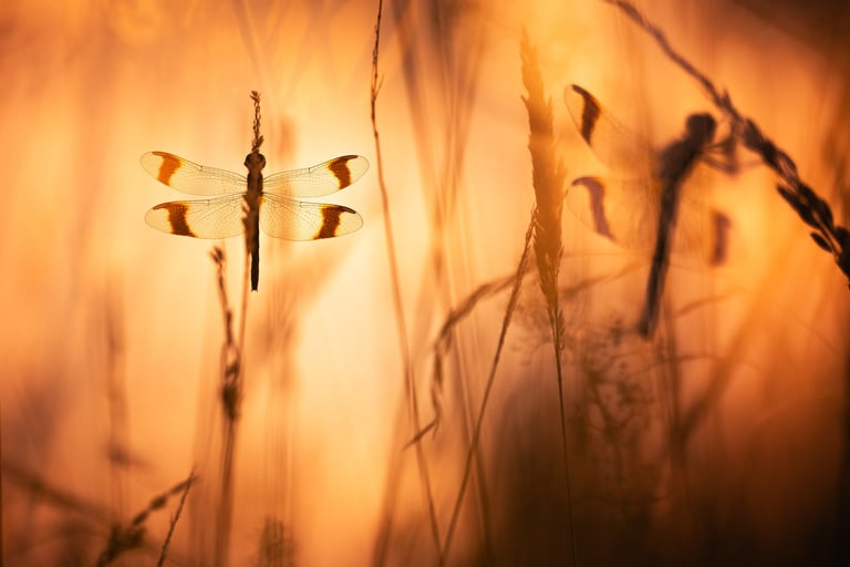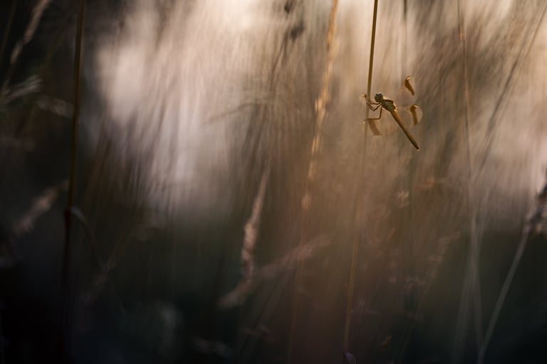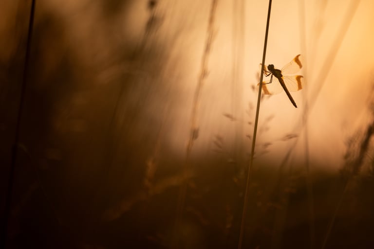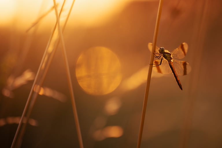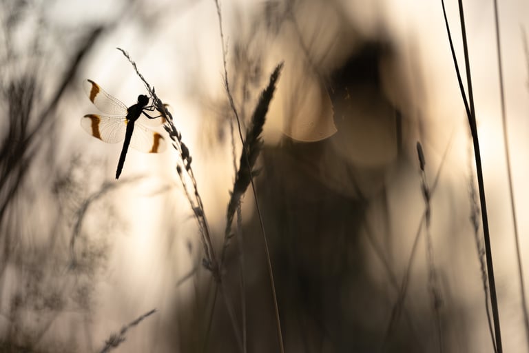After failing to find them on the first attempt, a second evening outing spent photographing banded darters was more succesful, the sunset light allowing for a couple nice images