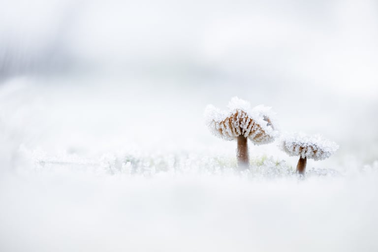 And then onto the start of winter. I think I've seen more frosty mornings so far than all of last winter, probably because of moving inland and slightly north. As I'm writing this a thin blanket of snow is melting outside, calling me to go back out again (the entire morning was spent outside already, but those images will follow later, maybe in next years end of year blog). Frosty mornings were spent on landscapes and frozen mushrooms. The sparce sunny moments of free time were spent photographing garden birds and starlings. The results of the images of birds in flight against the light I'm especially fond of, so I've featured those first up here. I also got lucky with a snow bunting being fairly cooperative, so those images are included aswell. I have high hopes for next year, best wishes to you all and may there be plenty more beauty in natures bounty to follow.