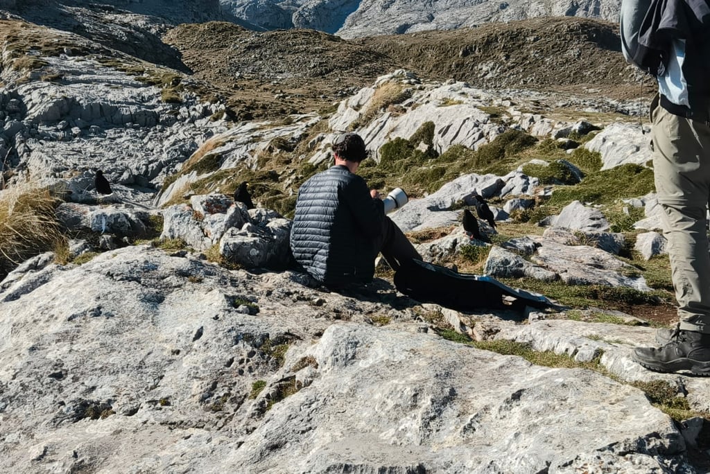 Aaron and stef on the lookout for citril finches, unaware that ibex were waiting for them around the corner.