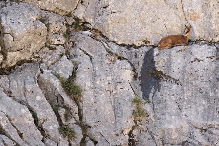 The next morning we went for a wonderful cable car ride up another mountain (or the scariest ride on the worst horror known to mankind if you ask Aaron or Stef). Here we found another alpine bird target: alpine accentor (Prunella collaris). No snow finches sadly, but great views and quite a lot of Pyrenean chamois (Rupicapra pyrenaica), many griffon vultures, a few golden eagles and a couple of beared vultures to make up for it. Also some very cooperative alpine choughs, clearly used to the huge amount of foot traffic and the corresponding food traffic. Harsh light again, but quite a few nice shots despite that, with some different lens options being possible with such tame birds.