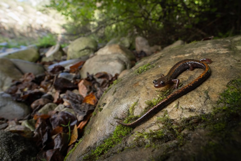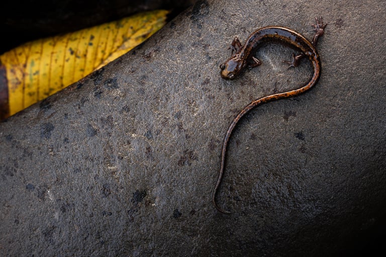 Salamander photography requires great flexibility. To get into the mind of the salamanders Aaron and Stef practice 2 hours of yoga a day in the weeks leading up to the trip.