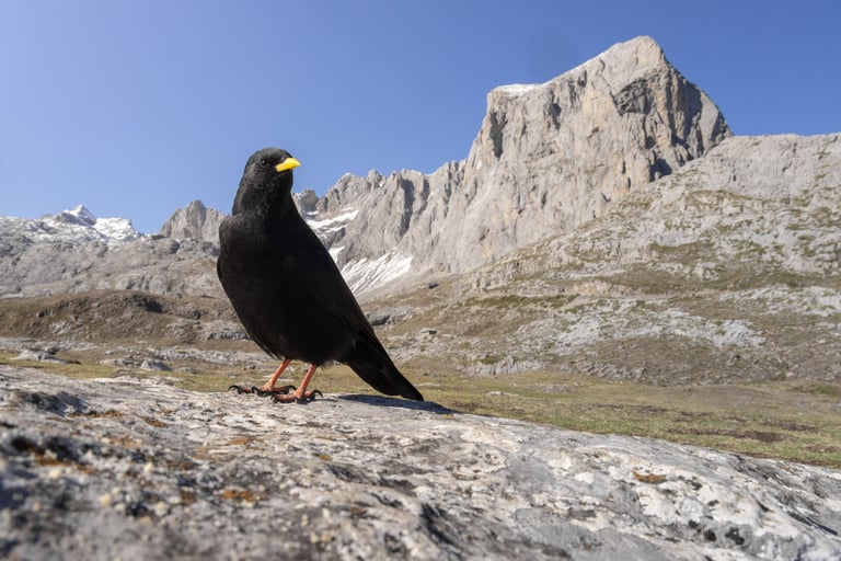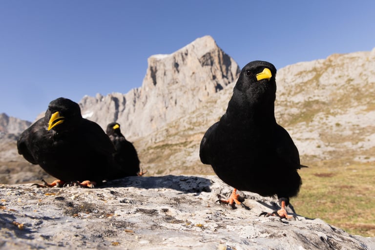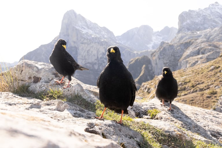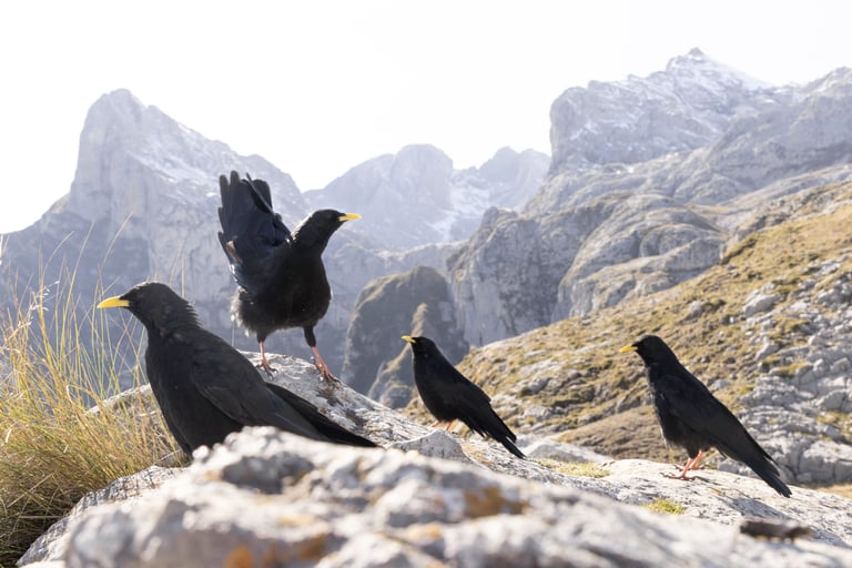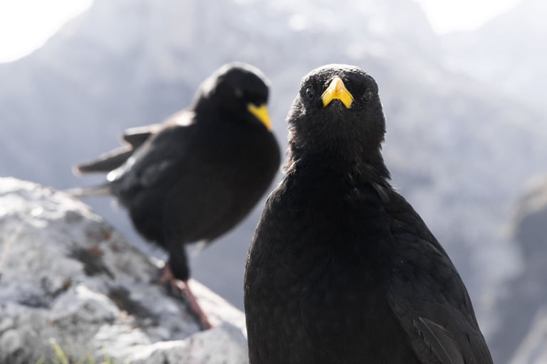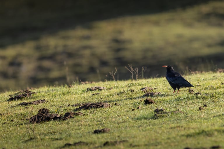 Weeks of time and long alpine walks were needed to win the trust of the choughs. Alternatively, you could just rustle a packet of cookies and the sound will make them fly to you from miles away, but that's not something any self respecting wildlife photographer would ever admit.