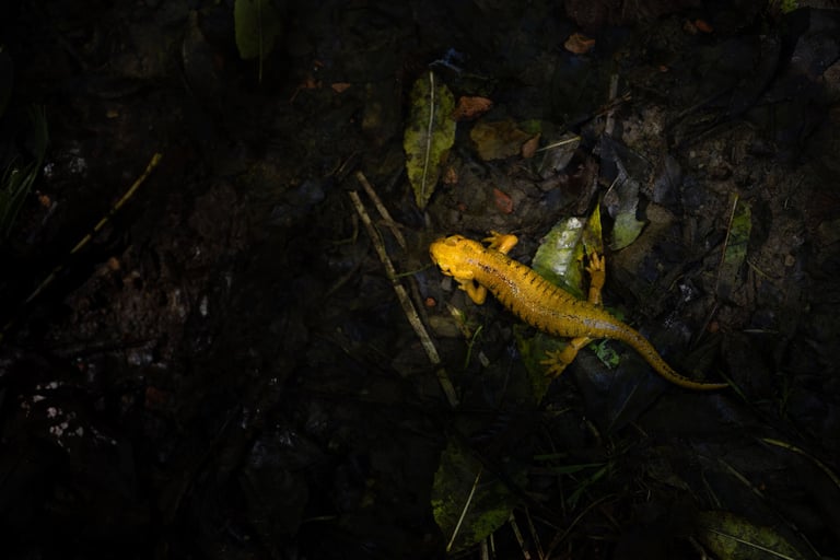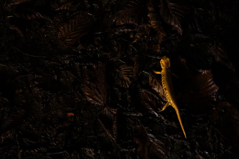 I'll recap the last 2 days briefly. Many hours (mostly around sunset and sunrise) spent searching for bears with a grand total of zero sightings. There were barely any hazelnuts and berries in the valley, so there was little reason for the bears to come up onto the slopes, most likely a result of the massive drought. We did see broom hare eventually (no pictures from my side), many fire salamanders (ssp. bernardhezi this time), beautiful landscapes and autumn colors, vultures, herbivores, Rana parvipalmata (what a banger) and a new lizard and butterfly species. With that list, one really can't complain, although missing the trips main target at the end does dampen the spirits somewhat in the moment. A last search for Triturus marmoratus near the airport only delivered a DOR individual and then it was time to go home. We'll find that bear someday, gotta keep something on the wishlist ;).