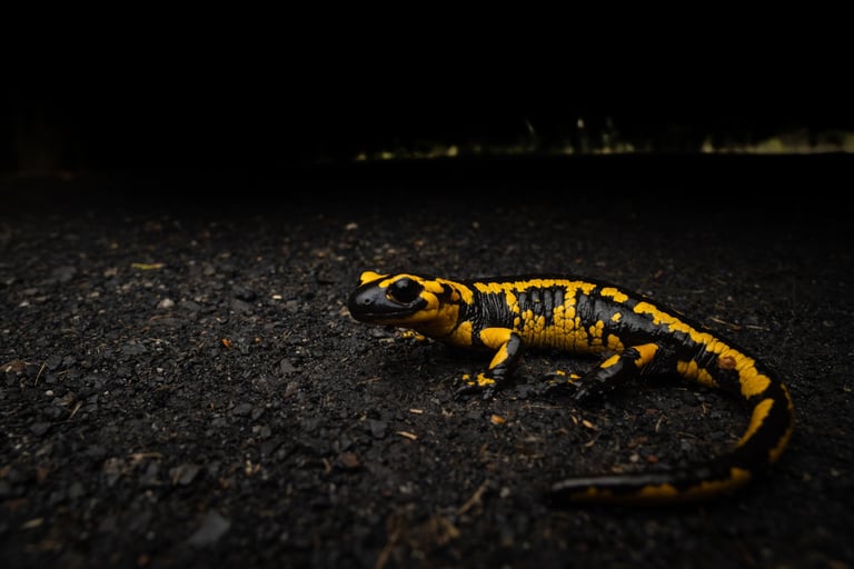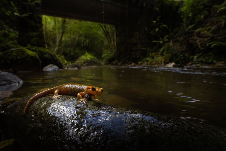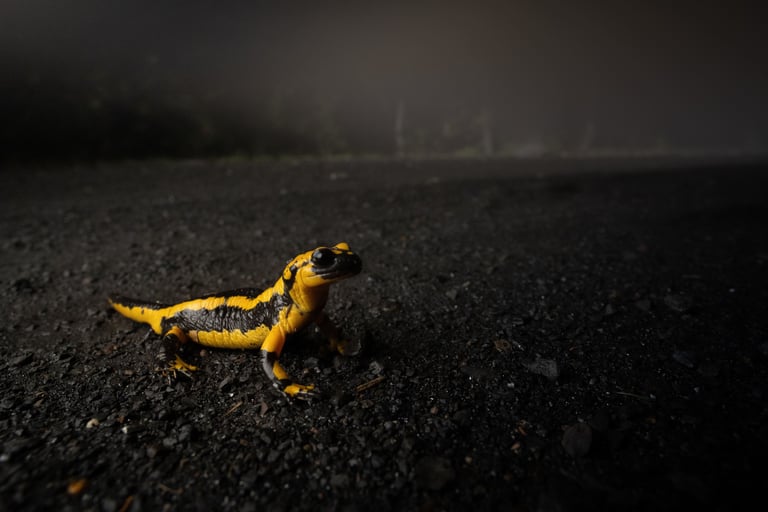 Late september I spent a week in northern Spain with friends Aaron and Stef. The main target: brown bears (Ursus arctos). Northern Spain has a few towns with good lookout points where bears are regularly seen in late summer and early autumn, when they come to forage for nuts and berries. Late summer in northern Spain was ripe with wildfire this year however and the area where the bears are often seen was closed off due to the scale of the fires. It opened up a few weeks before we were due to go bear watching, so we'd still get our chance. Beside bears there were several targets European wild cats (Felis silvestris), fire salamanders (subspecies alfredschmidtim and bernardhezi), gold striped salamanders (Chioglossa lusitanica) and a couple of birds being the main ones. The trip started off in salamander country, the wettest north side of the Picos de Europa. Without much effort we were able to find the desired Chioglossa and the several varied individuals of the first subspecies of fire salamander. After a photography session we moved on towards the accomodation, trying several abandoned buildings for edible dormouse, without much luck. A consolation prize came in the form of a roosting greater horseshoe bat (Rhinolophus ferrumequinum). A night cruise didn't deliver any specialties, but we were able to get some common mammals on the list.