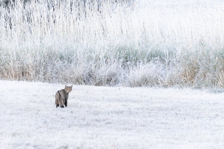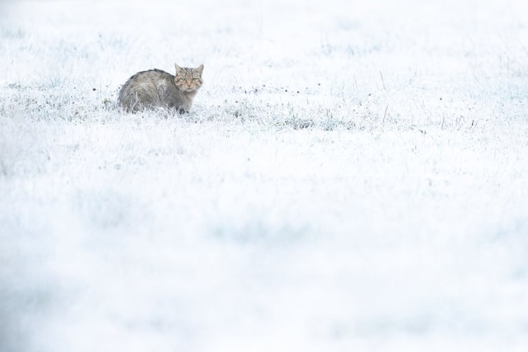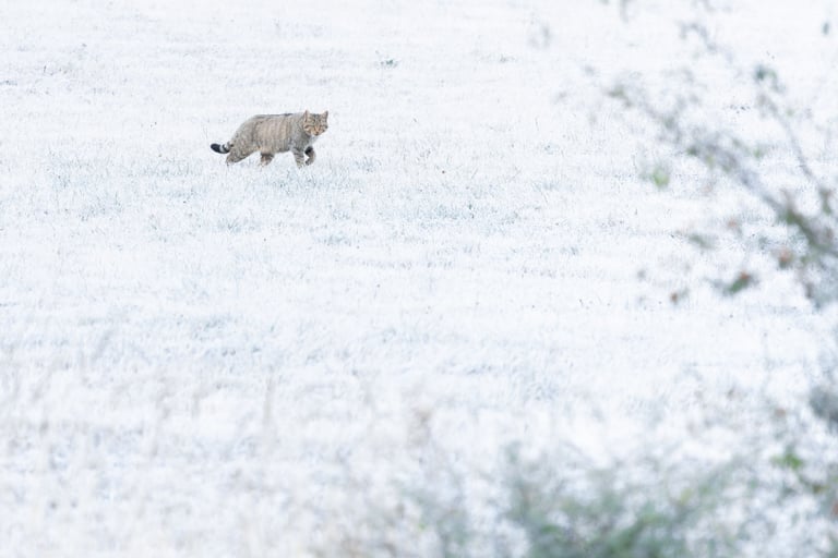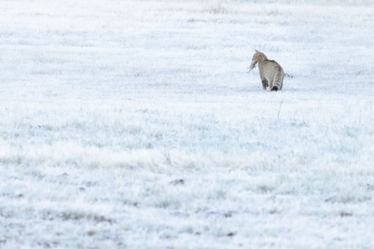 Wildcats would have to wait until the morning, and wait they did! We awoke to a stunning frosty landscape, finding 4 different wildcats, including one fairly cooperative individual. We witnessed predation of voles and were able to get some shots in the beautiful wintry looking landscape. We weren't lucky enough yet apparently, as rock flipping after the frost melted and the cats retreaded into cover for the day delivered an absolutely spectacular Vipera seoanai, still cold from the frosty morning so cooperative enough for some photos. Another katydid for Aaron (and me admittedly, I've got a weak spot for these saddled guys) and lifer citril finches for Aaron and Stef (I'd seen the species once before) rounded out an incredible morning. The afternoon was spent looking for brown frogs (yes, really...) finding only a Bufo spinosus. A lifer for me and new for the triplist, but not the desired Rana parvipalmata. After a morning like this however, who can complain. A night cruise for broom hare proved unfruitful, but some lesser horseshoe bats, another wild cat, several foxes and badgers softened the pain.