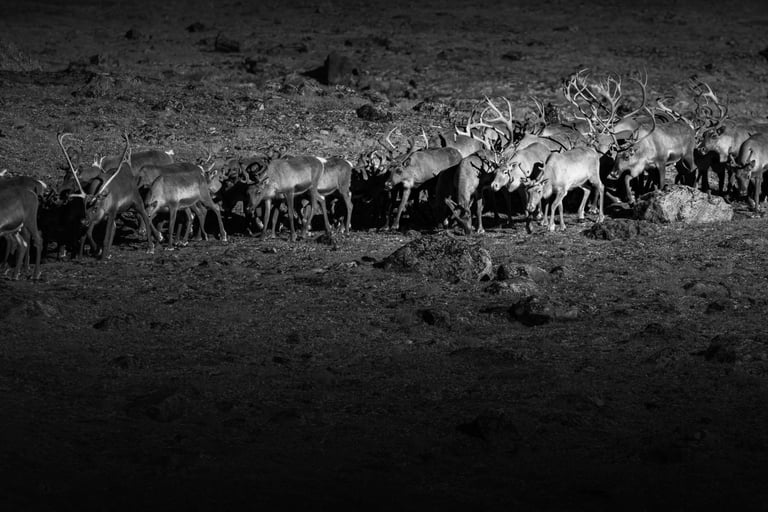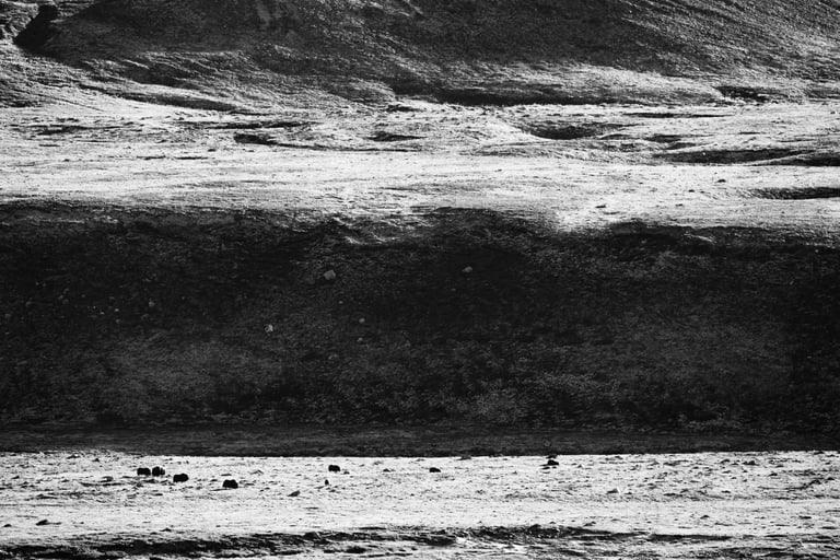 Aside from muskox, I had very few encounters. Most birds had departed from the area, and the arctic fox I hoped for, didn't happen, partially because of a different route because of safety. I did encounter a large group of reindeer, which was super cool, but the light was quite terrible, and the angles for backgrounds equally so, considering I didn't want to move to avoid disturbing the herd. I tried converting some images to black and white, which turned out pretty decent.